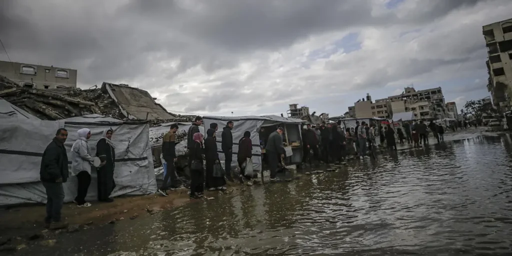 La situación se agrava todavía más con la destrucción masiva de infraestructura: caminos, sistemas de drenaje, redes de agua y saneamiento fueron devastados durante los bombardeos, lo cual impide que las precipitaciones se evacuen adecuadamente.