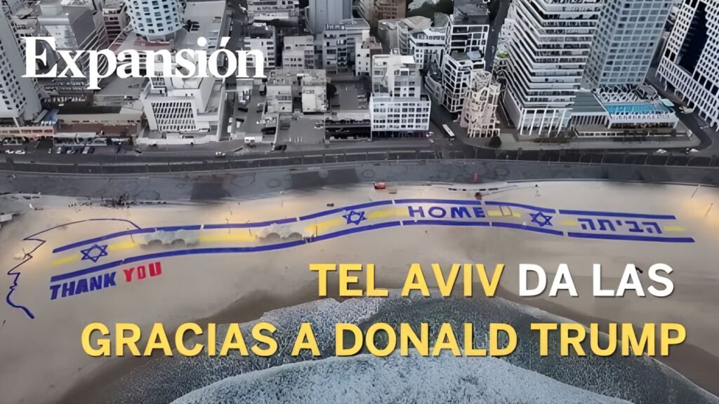 Guayaquil, 13 de octubre de 2025. En una muestra de gratitud sin precedentes, miles de ciudadanos israelíes se congregaron en la playa de Tel Aviv para formar un gigantesco mensaje que decía “THANK YOU” en homenaje al expresidente de Estados Unidos, Donald Trump, por su papel fundamental en la reciente firma de un acuerdo de paz con Hamas. La instalación, que abarcó varios metros de la costa, fue visible desde el aire y se convirtió en un símbolo del agradecimiento nacional.