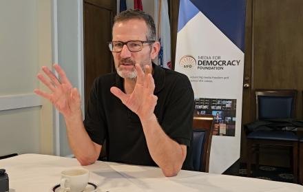 La conversación se dio en el marco del programa Garantizando la Rendición de Cuentas a través de la Cobertura de Profundidad, impulsado por la Fundación Medios para la Democracia, que busca promover investigaciones periodísticas sobre temas estructurales que afectan la gobernabilidad en la región.